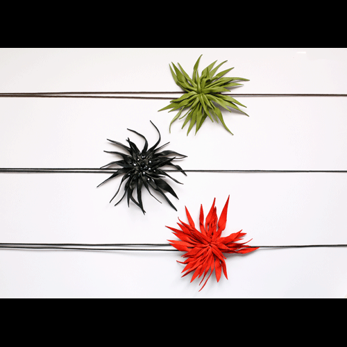 The bags, belts and necklaces are made out of vibrant, dyed leathers and the feathers are the main components found in the earrings, brooches and necklaces.