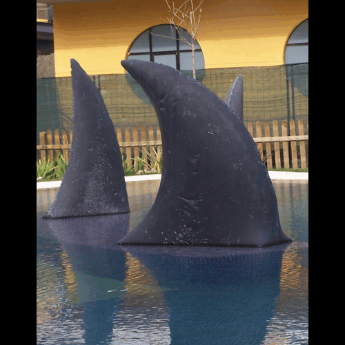 Mármol negro de Calatorao. 600 x 500 x 150 cm. Colocadas en una piscina comunitaria parecen unos tiburones merodeando a los bañistas.