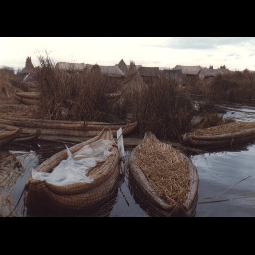 Viaje realizado a Bolivia en el mes de Agosto de 1981. La isla de los Uros es un pueblo primitivo asentado en islas de totora (especie de caña del lugar) sobre el lago titicaca, con los que fabrican las casas y las balsas. El poblado esta constituido por familias numerosas de 7,8.9 hijos, con aspecto deteriorado debido a la incidencia del sol por situarse a gran altitud 3831 metros.