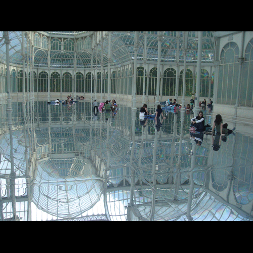 Respirar-una mujer espejo, consistía en una colonización y manipulación de todo el espacio del palacio de cristal por medio de un espejo continuo en todo el suelo y de la tamización de la luz en los vidrios del palacio. Esta acción permitía tener múltiples y diversas visiones del entorno.