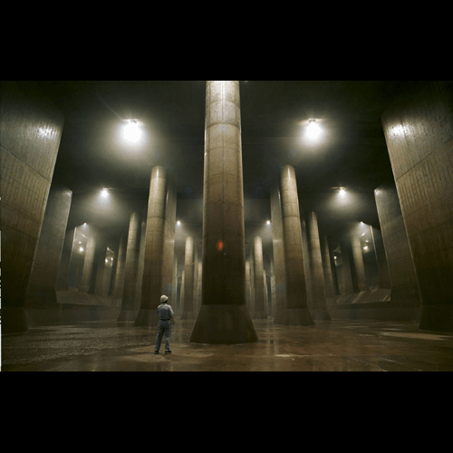 No se trata de fotomontajes, en realidad se trata de imágenes del proyecto G-Cans, una enorme infraestructura subterránea construida bajo el suelo de Tokio para evitar las riadas de los ríos y aguas de lluvia de la ciudad. Han construido cinco silos de 32 metros de diámetro y 65 de profundidad conectados por una red de gigantescos túneles de 64 kilómetros de longitud (a 50 metros bajo el subsuelo). El acceso está prohibido, las fotografías no son nuestras son de la empresa constructora que ha realizado este proyecto.