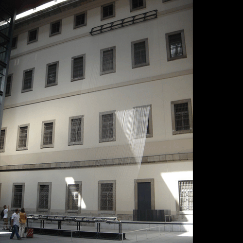 On these images from Keima Kawashima´s works, the Beauty of the Movement is named “The Flicker of Time”. The movement of the waves is created for metal cables and bars. Their movements is shows in a rhytmical, measured and controled way.